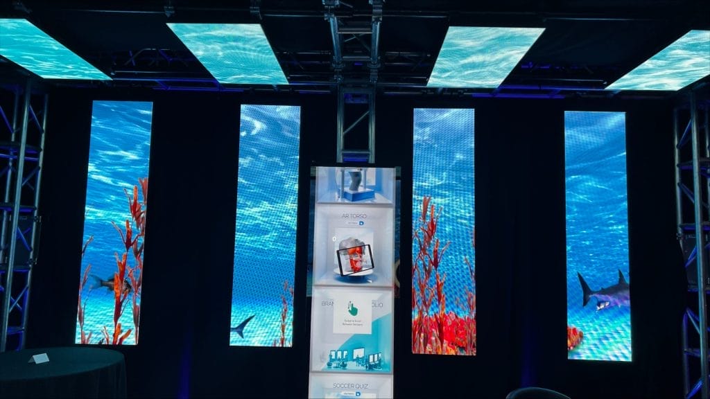 Anamorphic Content: Mesmerizing anamorphic content was displayed on an LED wall in a continuous loop, highlighting the stunning visual effects that anamorphic media can achieve.